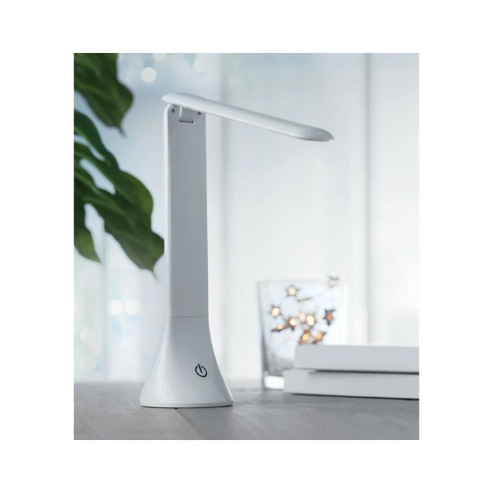 Moderni lukulamppu COB. Lukuvalo taitettavissa. Pöytälamppu syttyy koskettamalla lampun jalkaa. Saat säädettyä lukuvalon kolmeen eri voimakkuuteen. Lamppu toimii USB kaapelilla sekä 3AA paristoilla. Lampun koko 25 x 7,5 cm. ROCH ja CE hyväksytty. Väri: valkoinen