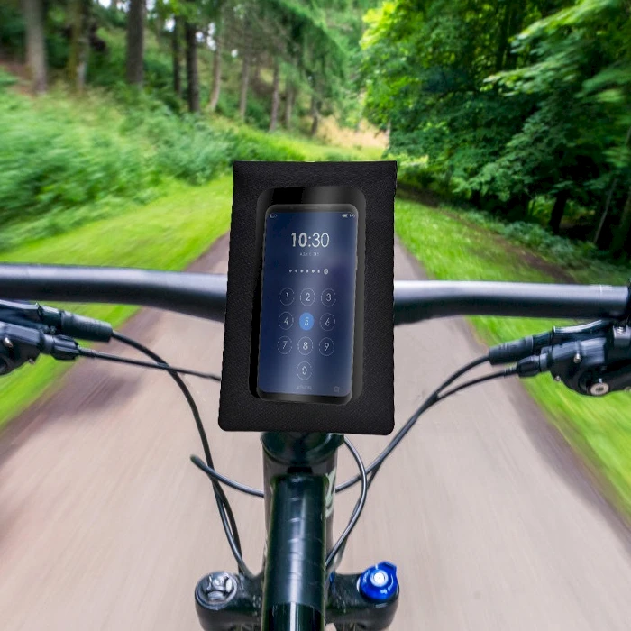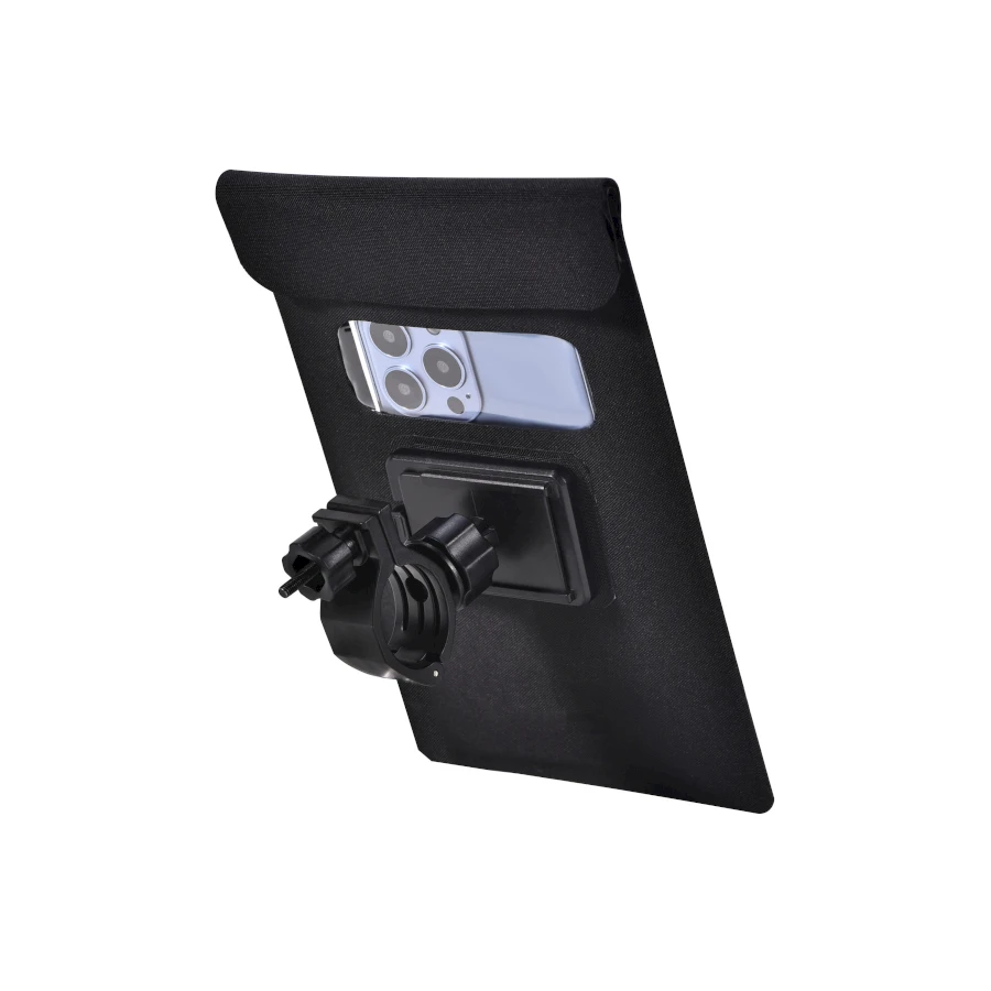 Vedenpitävä älypuhelinteline polkupyörään. Puhelinlaukun vedenpitävyys IPX 8/1 m. Voit käyttää puhelimen kosketusnäyttöä tämän suojan kanssa. Kiinnitä puhelinteline pyörän ohjaustangolle tai runkoon. Pääset helposti ja turvallisesti käsiksi puhelimesi kuviin, karttoihin, GPS:n, puhelun vastaamiseen ja soittamiseen jne. Telineessä pikalukko, jonka avulla irrotat puhelinlaukun nopeasti ja helposti pyörästä. Sopii useimmille iPhone puhelimille kuten iPhone 13 PRO jne. Saat yrityksesi logon painettuna puhelintelineeseen. Pyydä tarjous.