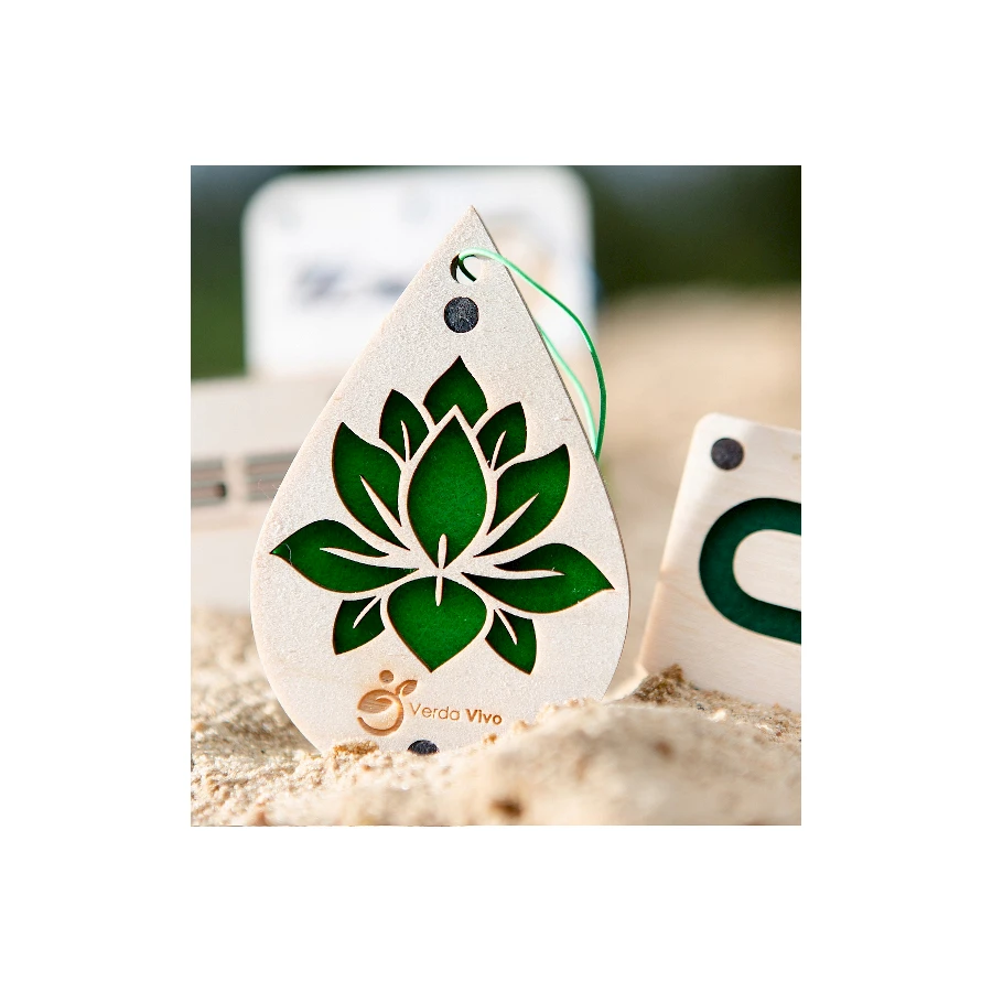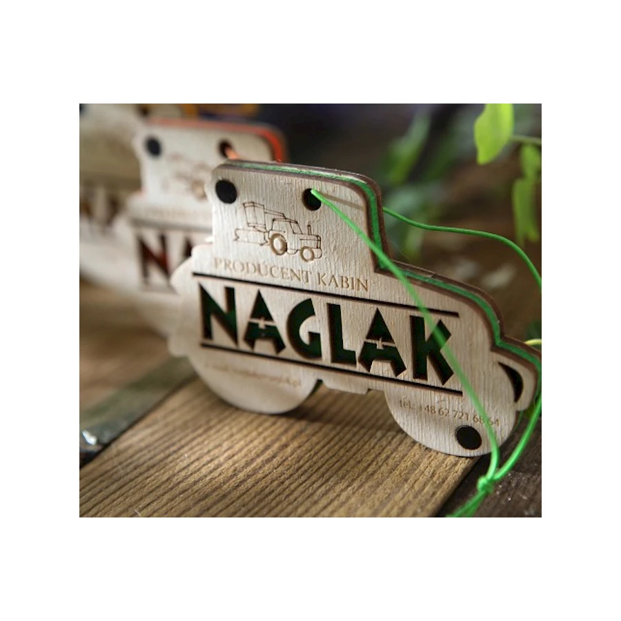 Puinen ilmanraikastin omalla painatuksella. Raikastimen muoto ja koko voi olla mikä tahansa. Puisen ilmanraikastimen sisällä 3 mm huopa. Raikastimen koko paksuus on 9 mm. Jokaiseen raikastajaan on liotettu 3 ml tuoksua.
