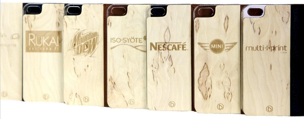 Tyylikkäät ja mukavan tuntuiset puiset kännykkäkuoret Iphone puhelimelle. Puiset kännykäkuoret sopivat iPhone 5/5s. Materiaali puuta ja kestävää läpinäkyvää muovia. Uniikki pohjoismainen design kuori suojaa puhelinta ja on yksityiskohtia myöten tehty huolella. Kaiverrus mahdollisuus tekee kuorista uniikin joko tekstillä tai logolla varustettuna.