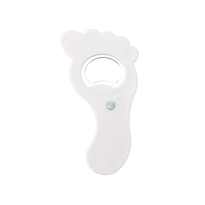 Jalan muotoinen pullonavaaja magneetilla. Hieman erilainen pullonavaaja, joka toimii myös hauskana jääkaappimagneettina. Takana on pieni magneetti. Saatavana myös muita malleja ja värivaihtoehtoja. Logopainatus voidaan tehdä joko etupuolelle tai molemmille puolille. Pyydä tarjous.Väri: valkoinenMateriaali: ABS-muovi/teräsKoko: 106 x 57 x 3 mm