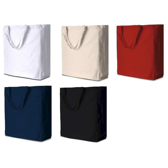 Puuvillakassi 140G / 38 x 42 x 10 cm. Kassissa 10 cm leveä pohja ja lyhyet kantokahvat. Kestävä puuvillakassi on ekologinen vaihtoehto kauppakassiksi tai varakassiksi. Kassi on valmistettu Öke-Tex® Standardin 100 mukaisesta turvallisesta puuvillasta. Saat kassiin haluamasi logomerkkauksen tai mainospainatuksen. Pyydä tarjous. Värit: valkoinen, luonnonvalkoinen, punainen, sininen, mustaMateriaali: 100 % puuvilla 140 g/m2Kassin koko: 38 x 42 x 10 cm.