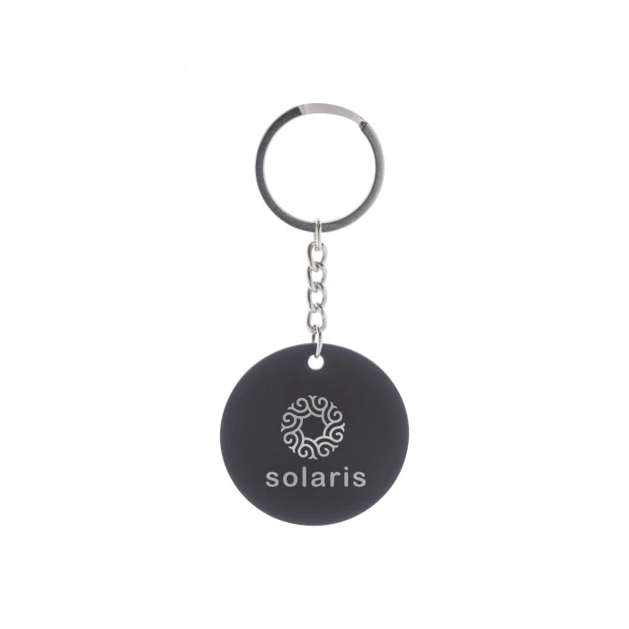 Kestävä metallinen avaimenperä kierrätetystä ruostumattomasta teräksestä. Pyöreä muotoilu on ajaton ja tyylikäs. Avaimenperän halkaisija 4,5 cm. Avaimenperässä tyylikäs kumipäällysteinen viimeistely. Logomerkkaus voidaan toteuttaa peililaserkaivertamalla.