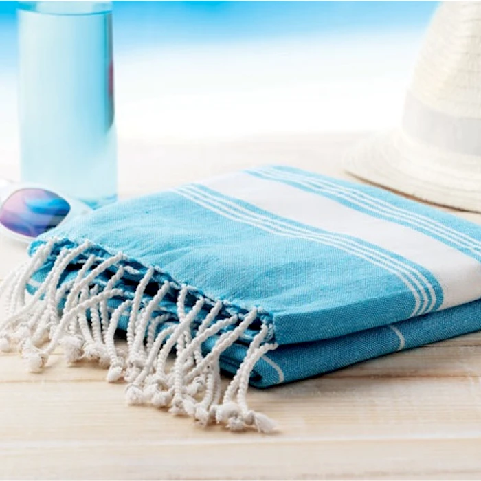 Pyyhe Hammam 90 x 170 cm. Kevyt ja pehmeä 100 % puuvillapyyhe on ohut ja imukykyinen pyyhe mukaan vaikkapa rannalle.