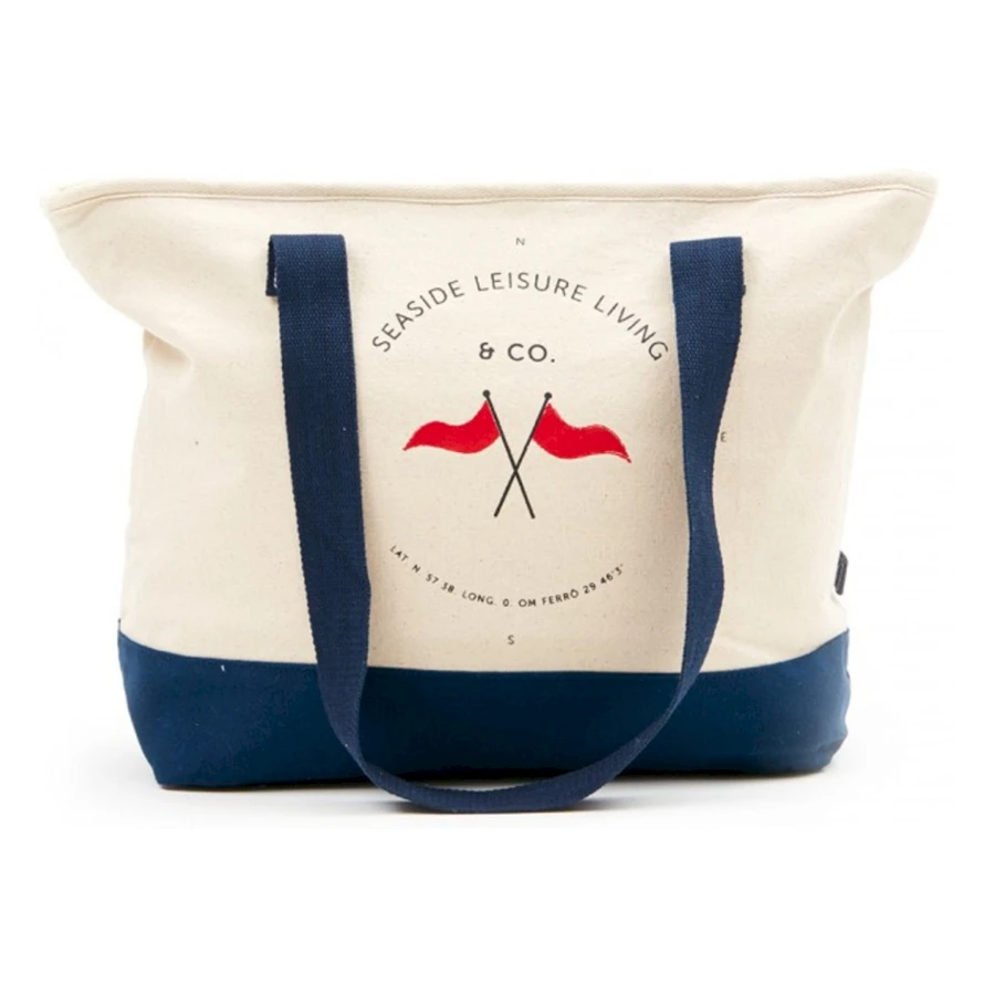 Hieno rantalaukku paksusta puuvillakanvaasista (250g/m2). Yläosassa pitkä vetoketju, jonka ansiosta kassi on helppo pakata. Lisäksi eristävä vuorikangas, joka pitää pikkueväät viileinä ja märän pyyhkeen kosteuden laukun sisäpuolella. Pitkien kantokahvojen ansiosta laukkua voi kantaa olkapäällä. Koko 38x15x37 cm. Pakattu muovipussiin.