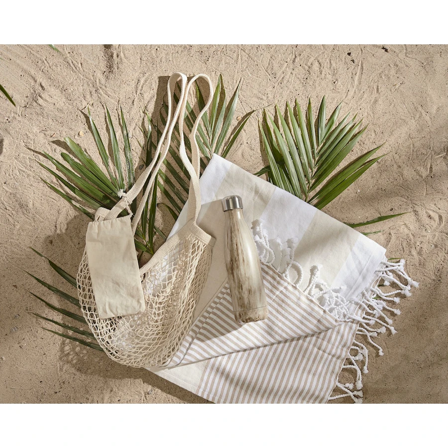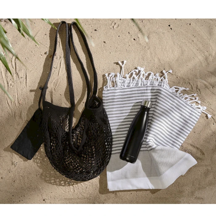 Mainio kesäinen lahjaidea ja perussetti lomanviettoon tai mukaan rannalle. Kesäisessä Päivä rannalla lahjasetissä on 100 % puuvillasta valmistettu verkkokassi. Teräksinen termospullo, joka pitää juoman kylmänä 24 tuntia ja kuumana 12 tuntia. Ohut kudottu hamam-pyyhe, joka sopii erinomaisesti rantapyyhkeeksi. Kaikissa tuotteissa on sama värimaailma. Värit: beige, musta