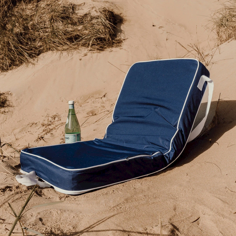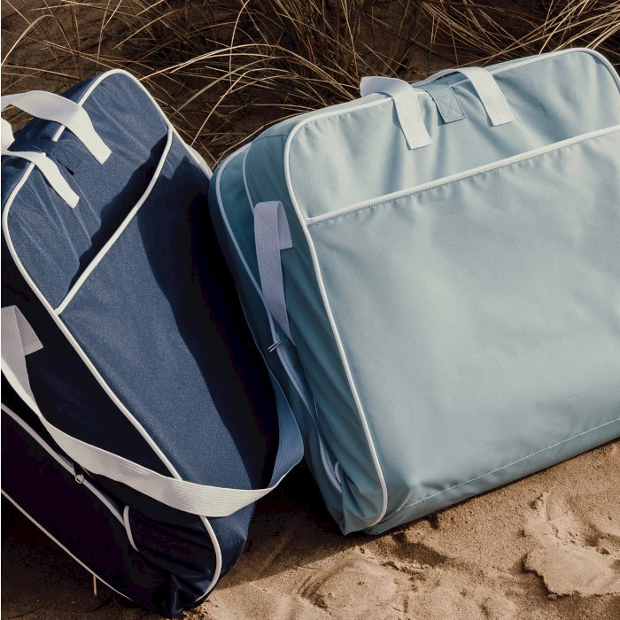 Kevyt ja kannettava rantatuoli toimii myös istuinalustana. Tuoli on kasattuna kuin kassi jossa pitkä kantohihna ja lyhyet kantokahvat. Todella helppo kantaa mukana vaikkapa rannalle. Taittuvaan tuoliin mahdollista painaa näyttävä mainosviesti. Rantatuolissa kuusi asentoa, kantohihnat ja tasku pientavaroille. Vettähylkivä päällinen sisältää 64 % GRS-sertifioitua kierrätettyä polyesteriä.