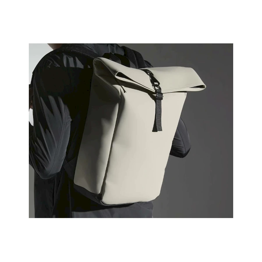 Reppu kierrätettyä polyesteriä. Moderni vettähylkivä Roll-up reppu on valmistettu 100 % kierrätetystä polyesteristä. Repun sisällä erillinen kotelo 15,6 " tietokoneelle sekä pullotasku. Repussa säädettävät olkaimet ja päällä kahva. Vetoketjun sijaan repussa on rullasuljin klipsikiinnityksellä. Minimalistisessa tietokonerepussa vettähylkivä matta pinnoite sekä kaksikerroksinen pohjapaneeli. Materiaali täysin PVC-vapaa.