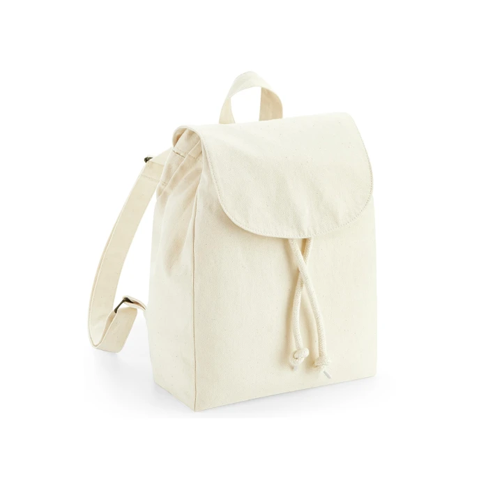 Westford Mill Pieni Reppu 100 % luomupuuvillaa. Repun läppä suljetaan painonapilla. Tilavuus 5 litraa. Reppu on käytännöllinen ja valmistettu vahvasta ekologisesta eco-puuvillasta. Puuvilla on GOTS -sertifioitu CU811033.