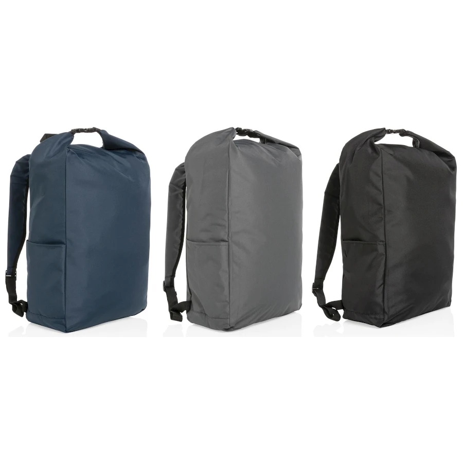 Ympäristöystävällinen Roll-Top Reppu rPET materiaalista. Repu on valmistettu kierrätetyistä PET-pulloista. Kestävässä repussa rullattava yläosa. Reppuun on mahdollista painattaa oma viesti tai logo.