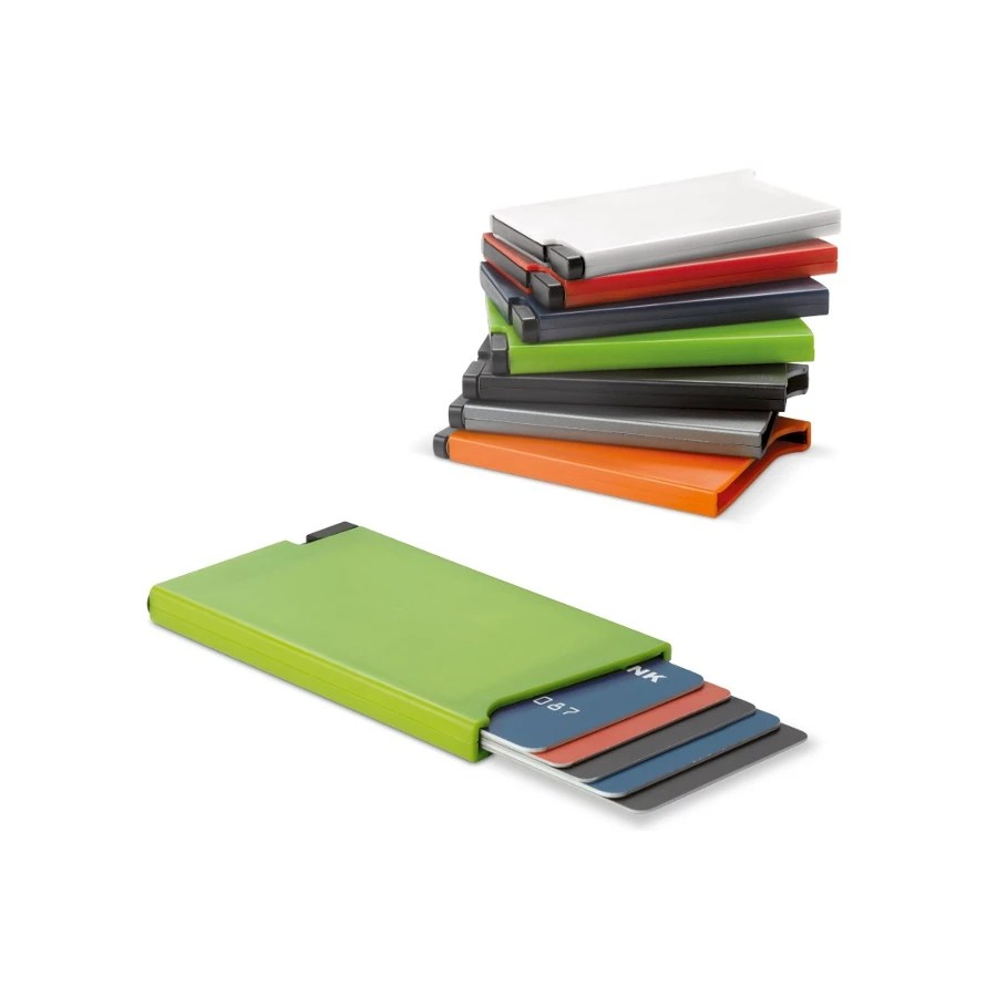ABS korttikotelo suojaa pankkikorttisi RFID-skimmaukselta. Nappia painamalla max 5 korttia nousee esiin siististi. Saatavilla useita värivaihtoehtoja. RFID-korttikotelo omalla painatuksella on nykyaikainen ja arvostettu yrityslahja, joka suojaa maksukortteja ja henkilötietoja luvattomalta etälukemiselta (RFID-suojaus). Samalla se toimii tyylikkäänä ja käytännöllisenä brändilähettiläänä asiakkaiden ja työntekijöiden arjessa. Yrityksesi mainosviesti voidaan painaa korttikoteloon.