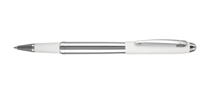 Luksus Rolleri Nautic kynässä on yhdistetty kiiltavän kromisia yksityiskohtia mattaisen lakka pintaa. Metalliset yksityiskohdat ovat kiillotettua kromia. Merkkaus laser kaiverruksella. Materiaali muovia ja metallia.