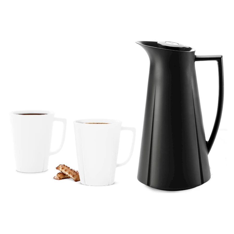 Testikilpailuja voittanut Grand Cru termoskaadin on laadukas termoskannu, joka pitää juoman lämpimänä tai kylmänä pitkään. Kaatimen neljä uraa, jotka löytyvät Rosendahl kaikista Grand Cru -sarjan tuotteista, antavat erityisen ilmeen tälle sirolle kannulle. Termoskaatimessa on painomekanismilla toimiva tarjoilua helpottava korkki, tipat estävä kaatonokka ja tuplaseinämäinen lasinen sisus. Materiaali on pintakäsiteltyä muovia ja lämmönkestävää lasia. Korkeus 28 cm. Pese käsin pehmeällä harjalla. Lahjasettiä saatavana useissa upeissa väreissä. Yhdistämällä 2 kpl Gran Cru posliinimukia ja termoskaatimen saat upean lahjasetin vaikkapa jouluksi.