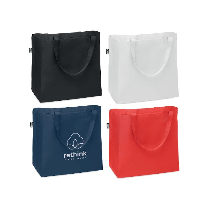 Iso ostoskassi Fama rPET materiaalista. Vahvasta 600D rPET materiaalista valmistettu iso kassi leveällä pohjalla on mainio kauppakassi tai vaikkapa rantakassi. Kassissa pohjalevennys joka tekee kassista tilavan. Kassissa pitkät kantokahvat jotka sallivat olalla kuljettamisen. Saat kassiin yrityksesi logomerkkauksen silkkipainatuksena tai digipainettuna. Pyydä tarjous.