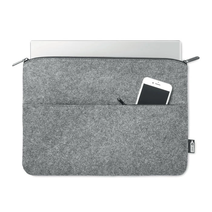 14-tuumaiselle kannettavalle tietokoneelle tarkoitettu suojataskun avulla kuljetat niin läppärisi kuin lisätarvikkeetkin turvallisesti ja käytännllisesti paikasta toiseen. Läppärisuoja on valmistettu kierrätysmuovista valmistetusta PET-muovista. Suojassa vetoketjullinen tasku. Etutasku tekee pienempien esineiden, kuten kynien tai muistiinpanojen, säilyttämisestä helppoa, mikä tekee laukusta ihanteellisen toimistokäyttöön. RPET Huopa kankaasta valmistettu suoja ja on kevyt. Logomerkkaus voidaan tehdä suojaan.