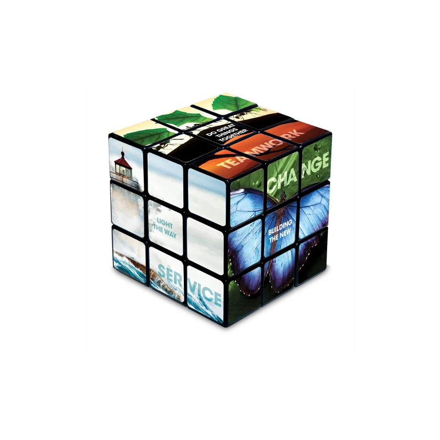 Rubiikin kuutio omalla painatuksella. Saat monivärisen mainospainatuksen rubiikin kuution jokaiselle sivulle. Useita eri kokoja. Pakattu yksittäin kartonkirasioihin. Pyydä tarjous omasta toteutuksesta.