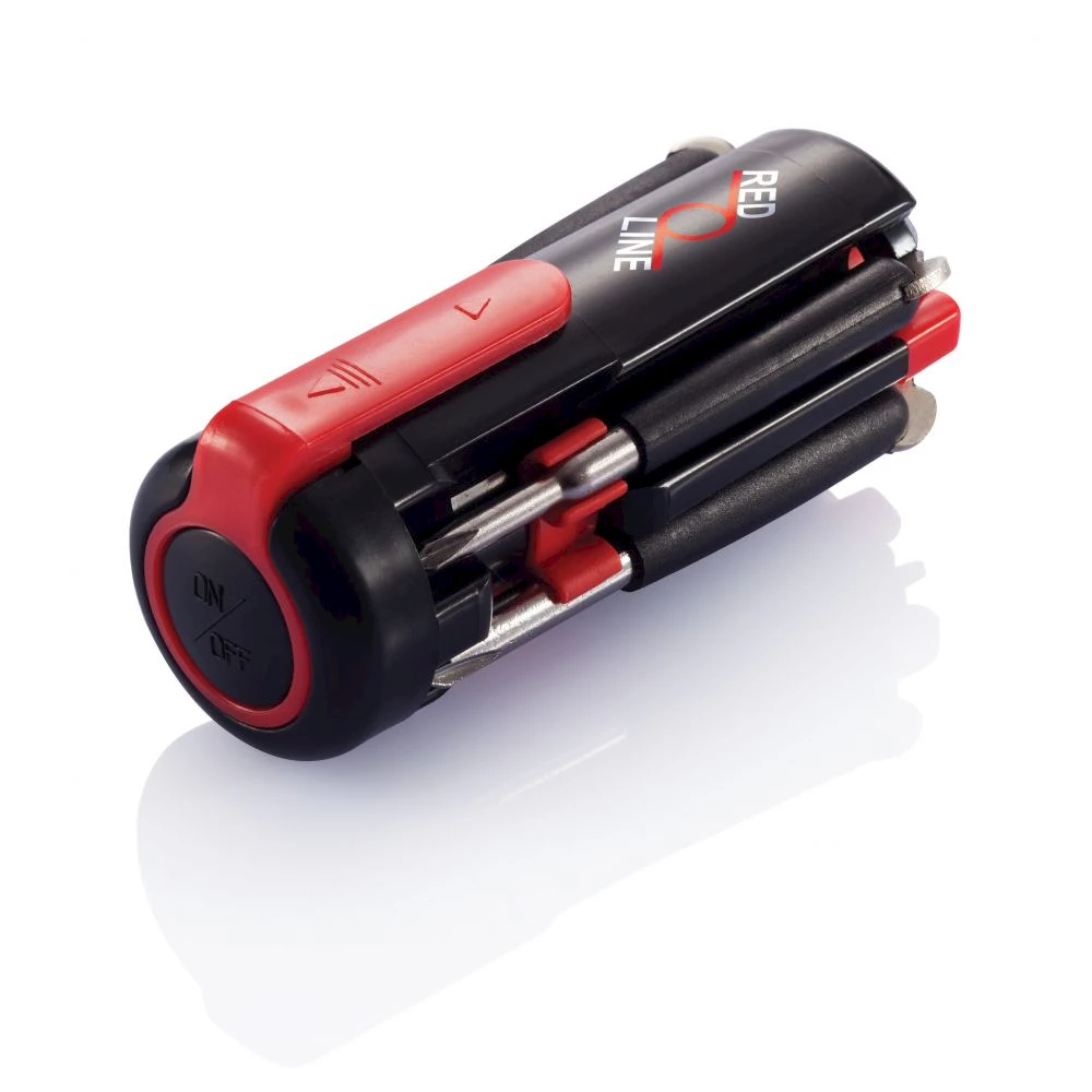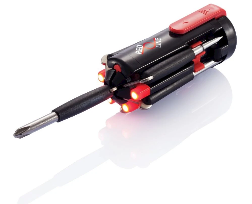 Kuusi elementtiä yhdessä ruuvitalttasetissä. ABS runko, hiiliterästyökalut: 2 urallista, 2 ristipäätalttaa, 1 vääntöavain ja 4 valkoista LEDiä, jotta näet paremmin työskennellä.