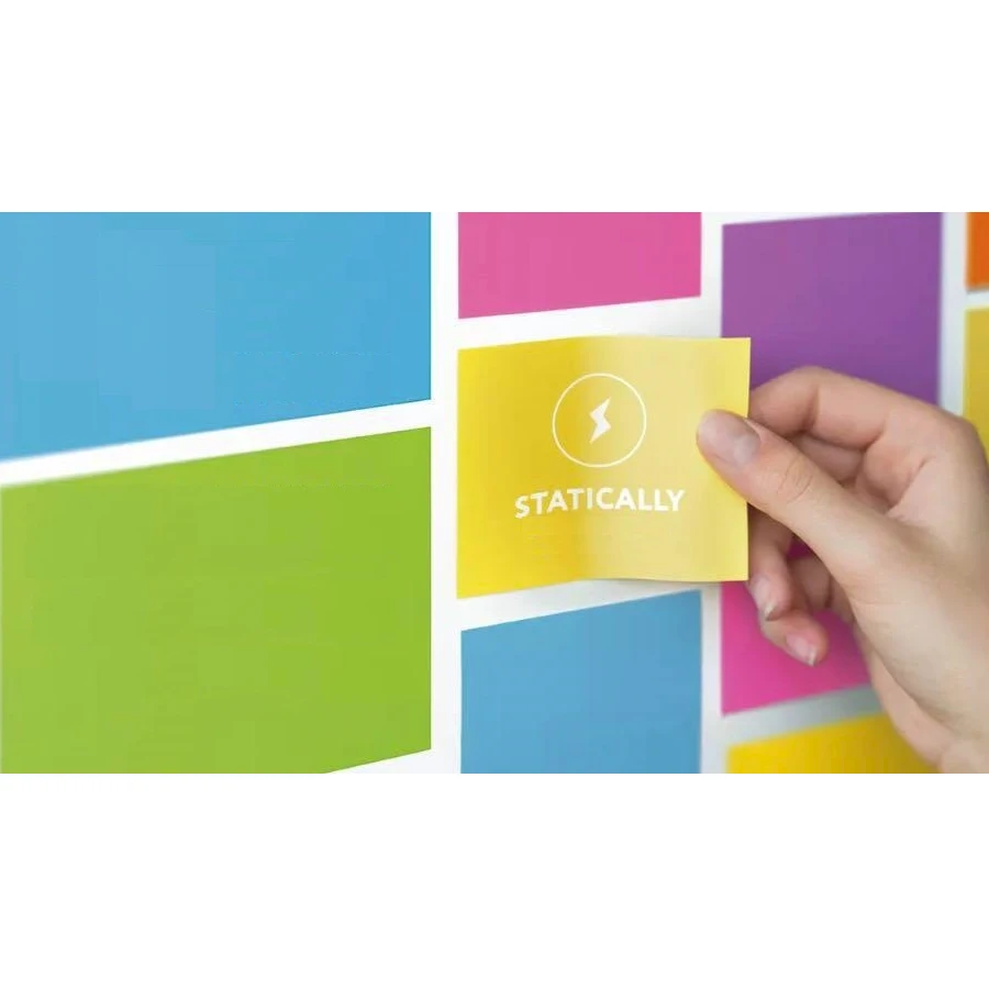 Sähköstaattiset muistilaput. Sähköstaattiset viestilaput pysyy tasaisilla pinnoilla tahraamatta niitä. Nämä tulevaisuuden muistilaput eivät sisällä ympäristölle haitallista liimaa. Muistilappulehtiö ja muistilaput voidaan personoida omalla painatuksella ja logolla. Saatavana useita värivaihtoehtoja ja kokoja. Pyydä tarjous omasta toteutuksesta.