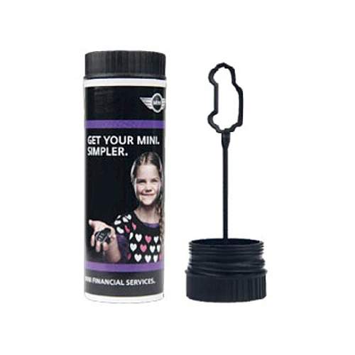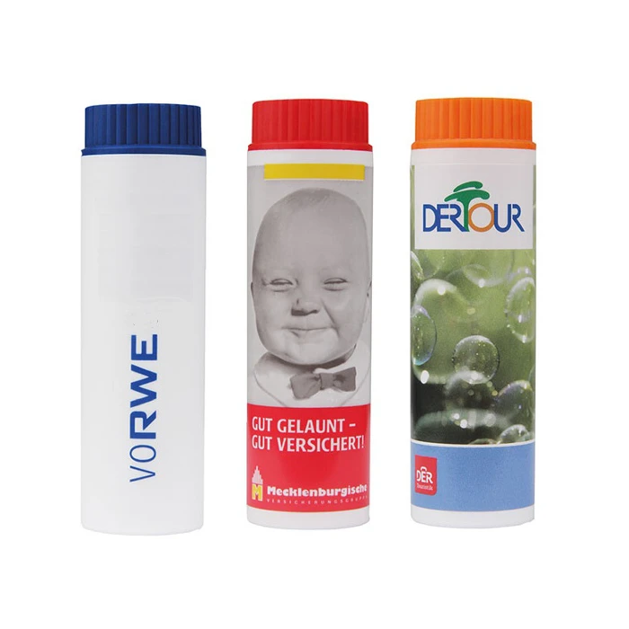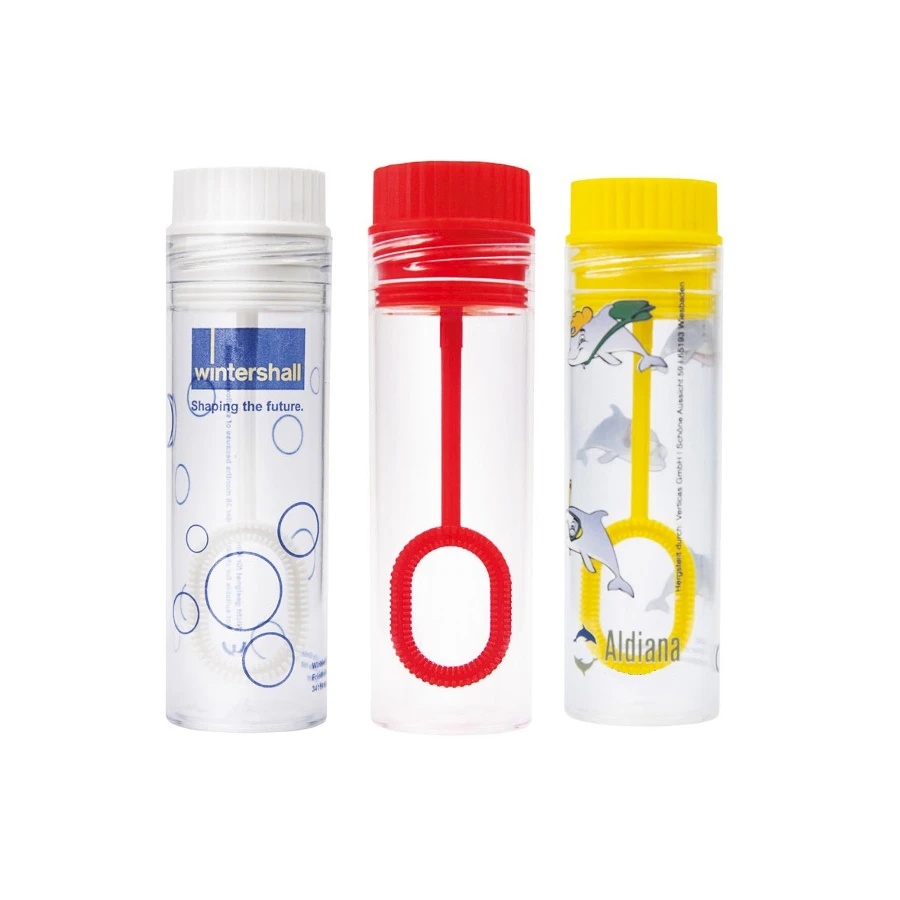 Saippuakuplapullo omalla painetulla etiketillä. Saippuakuplapuhaltimella saat puhallettua mitä kauneimpia saippuakuplia. Hauska kesälahja ja jakotuote festivaaleihin tai juhliin. Pullossa noin 42 ml. Saatavana useita eri kokoja ja malleja. CE-hyväksytty. Pyydä tarjous.Koko: 42 ml, 70 ml