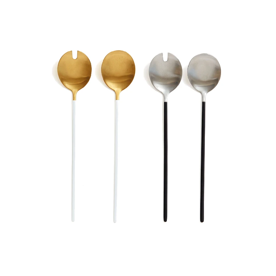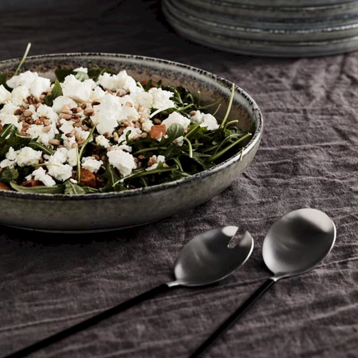 Teräksiset salaattiottimet. Yksinkertaisen ja sulavan muotokielen ansiosta sopivat hyvin yhteen erilaisten astiastojen kanssa. Tee setti yhdessä Nagawa-ruokavälinesetin kanssa. Koko: 27,5 cm. Pakattu lahjalaatikkoon.