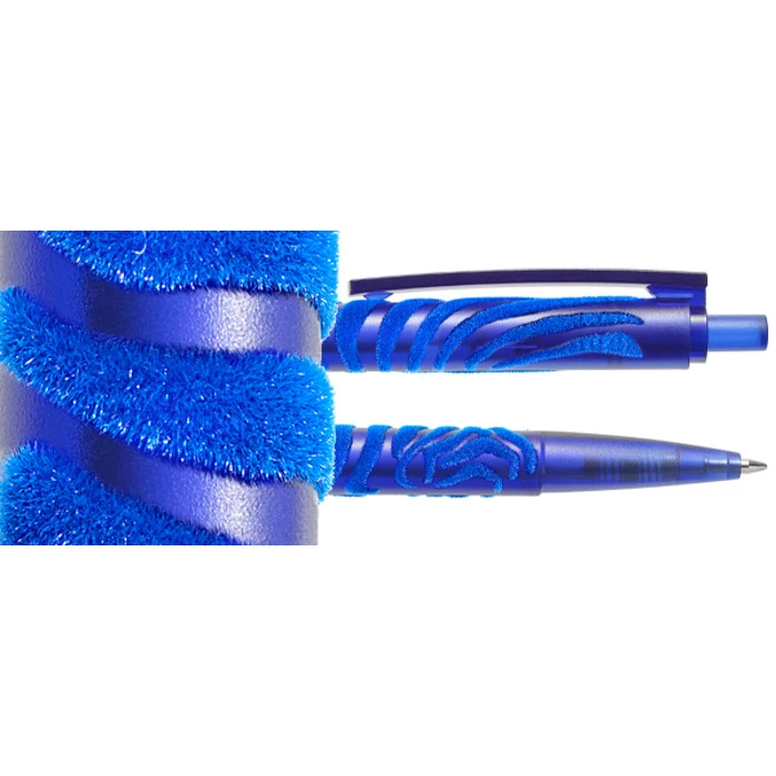 Samettikynä Velvet on huomiota herättävä mainoskynä jonka pintaan on tehty pehmeä samettimainen painatus. Kynän runko on valkoinen ja klipsi/painike ovat värillisiä. Saatavana seitsemässä raikkaassa värissä. Kynässä 1.0 mm sininen kirjoitusmuste. Paino 9 g.