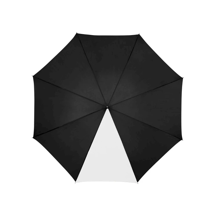 Musta sateenvarjo jossa yksi varjon paneeleista on värikäs. Suuri automaattisesti avautuva sateenvarjo suojaa hyvin sateelta. Automaattisateenvarjon runko, ruoteiden päät ja kärkipiikki ovat metallia. Koukkukahva on EVA materiaalia.