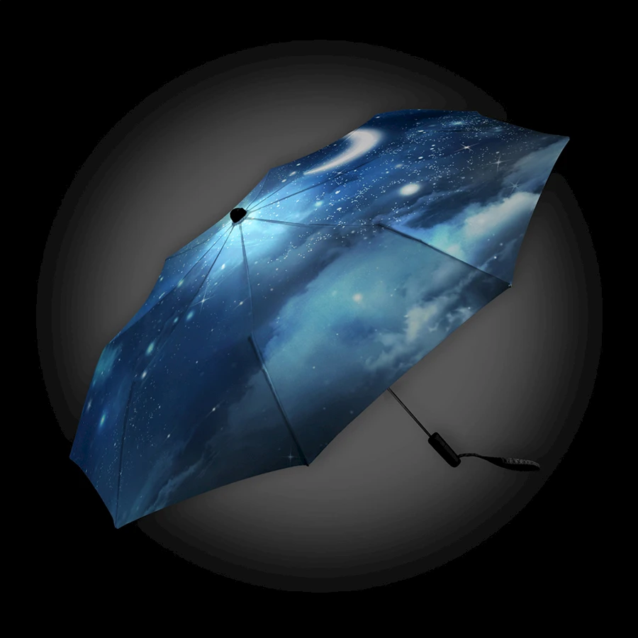 Sateenvarjo valolla ja hehkuvalla omalla designilla. Kun valo osuu sateenvarjoon, hehkuvat varjoon toteutettu brändisi mukainen painatus näyttävissä väreissä. Sateenvarjossa on automaattisesti avautuva/sulkeutuva mekanismi. Sateenvarjossa musta metallinen varsi, tuulta kestävä metallikehikko, tukeva kahva josta on hyvä pitää kiinni. Hehkuvin värein loistava sateenvarjo on hyvä suoja pimeässä.