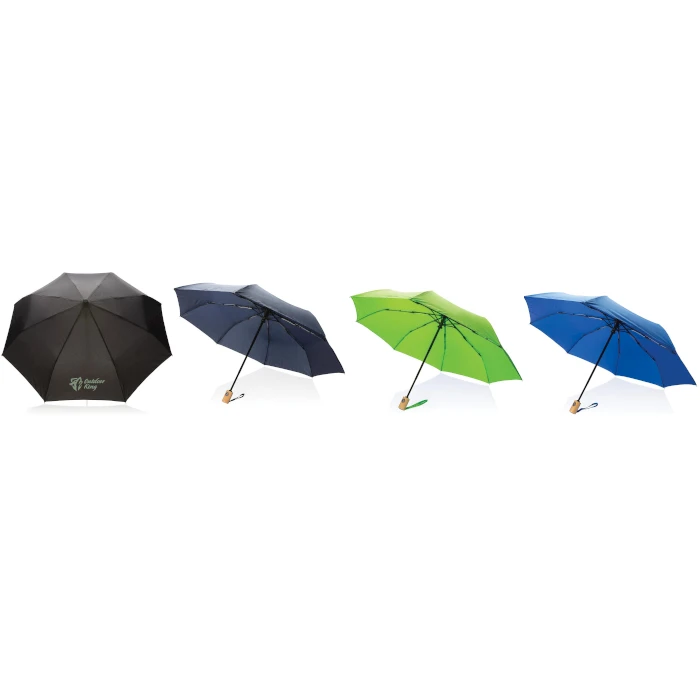 Sateenvarjo RPET. Sateenvarjossa on automaattinen avaus-/sulkemistoiminto. Minisateenvarjo on valmistettu 190T pongee rPET -polyesteristä. Sateenvarjossa on kaksiosainen metallirunko ja lasikuiturivat.