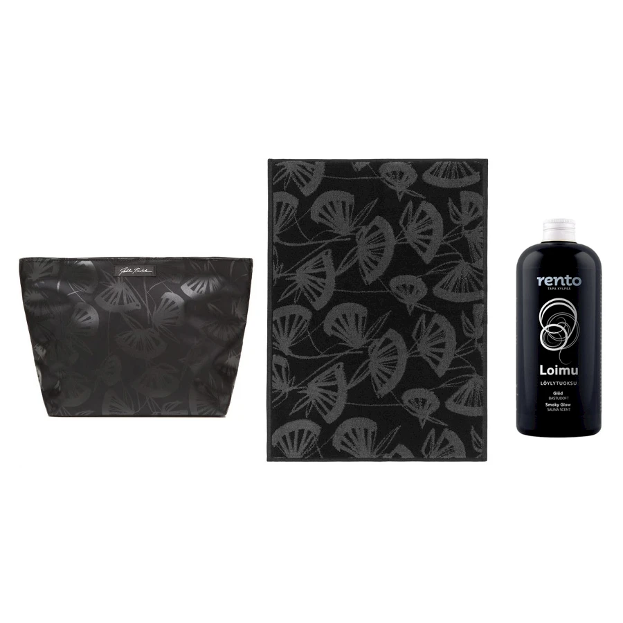 Ihastuttava saunasetti, johon kuuluu Jukka Rintalan Viuhka-toilettilaukku, Viuhka-käsipyyhe sekä löylytuoksu. Settiin voit valita viidestä värivaihtoehdosta haluamasi värin. Pyyhkeille myönnetty Design from Finland -laatumerkki. Setti toimitetaan ikkunallisessa lahjakotelossa.