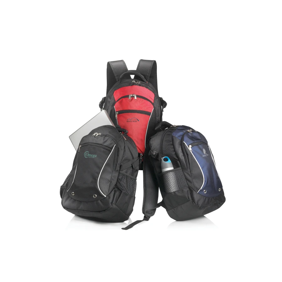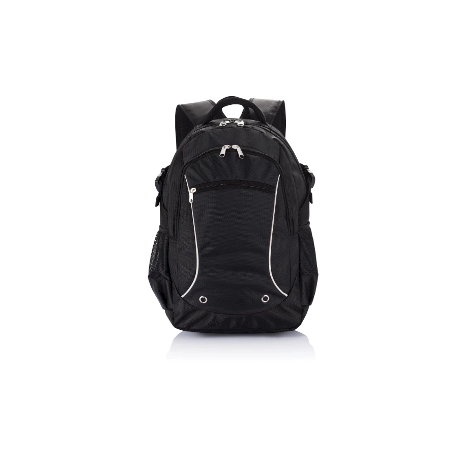 Selkäreppu kannettavalle tietokoneelle 1680D jakardikuvioinen. Vetoketjullinen etutasku pitää tavarat järjestyksessä. Vetoketjullinen päätasku, pehmustettu, sopii hyvin 15,4” kannettavalle tietokoneelle. Heijastavat reunoitukset. Kaksi verkkotaskua sivuilla.Värit: musta, sininen / musta, punainen / musta Pyydä tarjous omasta määrästä ja logomerkkauksesta.