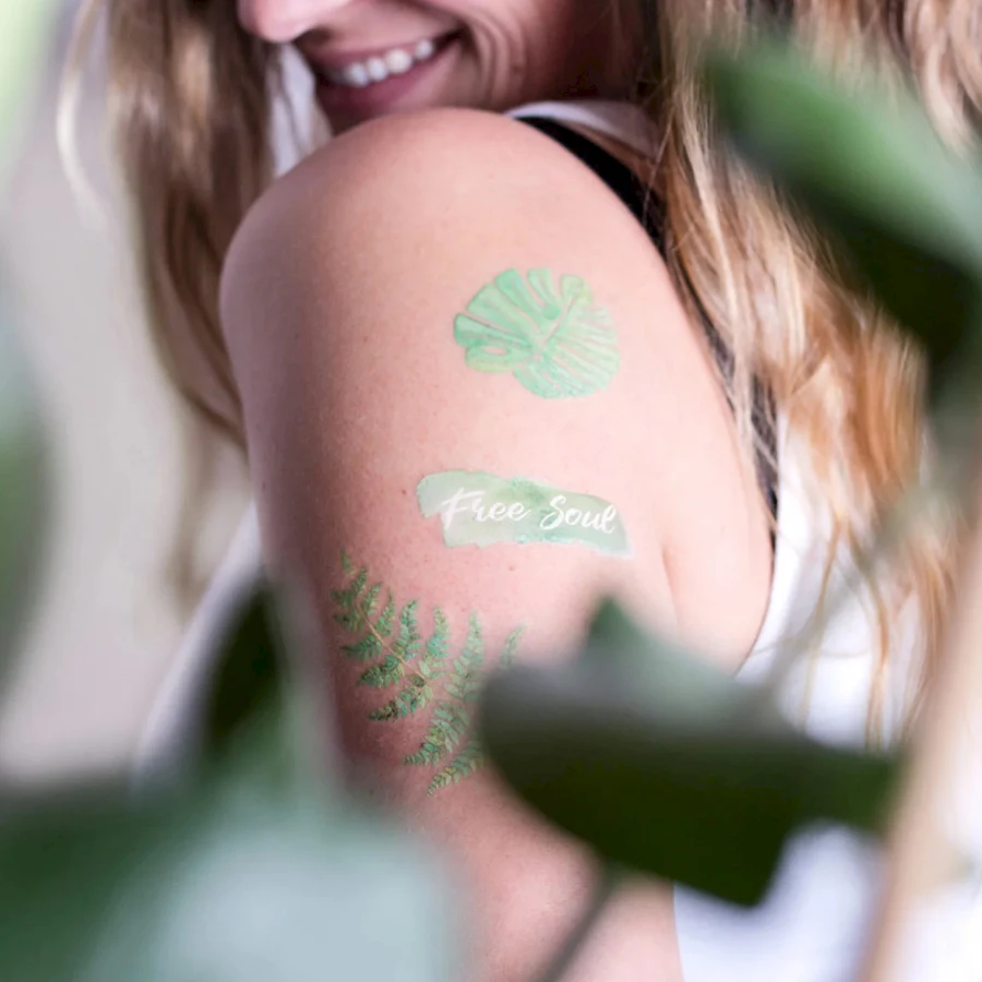 Siirtokuvatatuoinnit yrityksesi tapahtumiin ja messuille. Vegaaninen siirtokuvatatuointi pysyy iholla noin 2-6 päivää. Siirtokuvatatuointiin saat lisää pysyvyyttä spraylaastarilla. Siirtokuva on turvallinen ja helppo käyttää. Poista suojakalvo. Paina tatuoinnin etupuoli puhdistetulle iholle. Kostuta tatuointi liinalla ja odota 20 sekuntia. Poista paperi varovasti ja anna tatuoinnin kuivua. Saatavana useita eri kokoisia ja muotoisia persoonallisia tatuointeja. Pyydä tarjous omasta toteutuksesta.