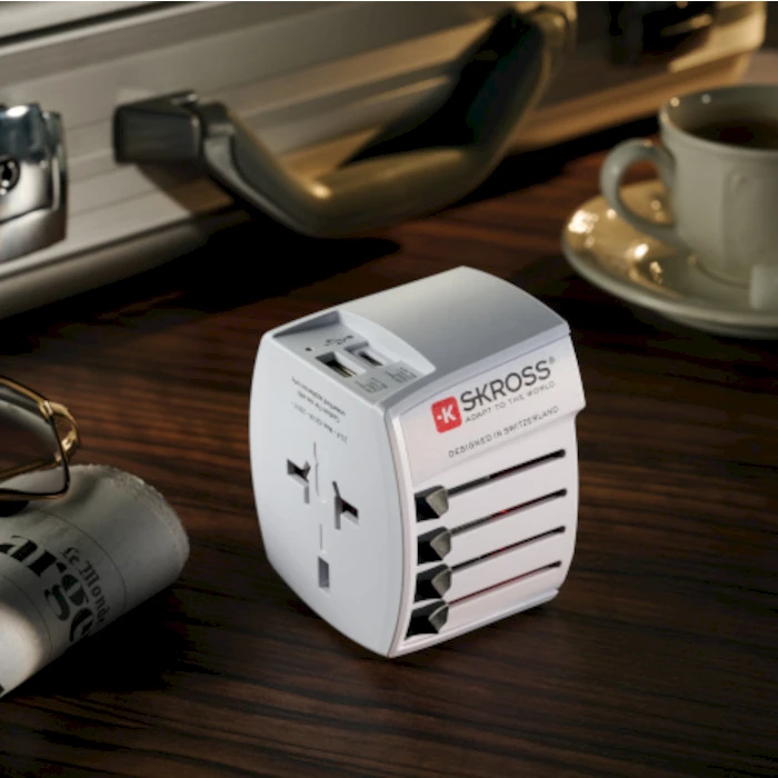 Missä tahansa oletkin, pysy yhteydessä ja pidä virta päällä. SKROSS® Adapteri World:in avulla nautit matkoistasi vaivattomasti. Adapterissa EU/US/ASIA/AFRICA-pistokkeet. USB-A ja USB-C portit. Kokonaisteho 65 W:matkasovitin.