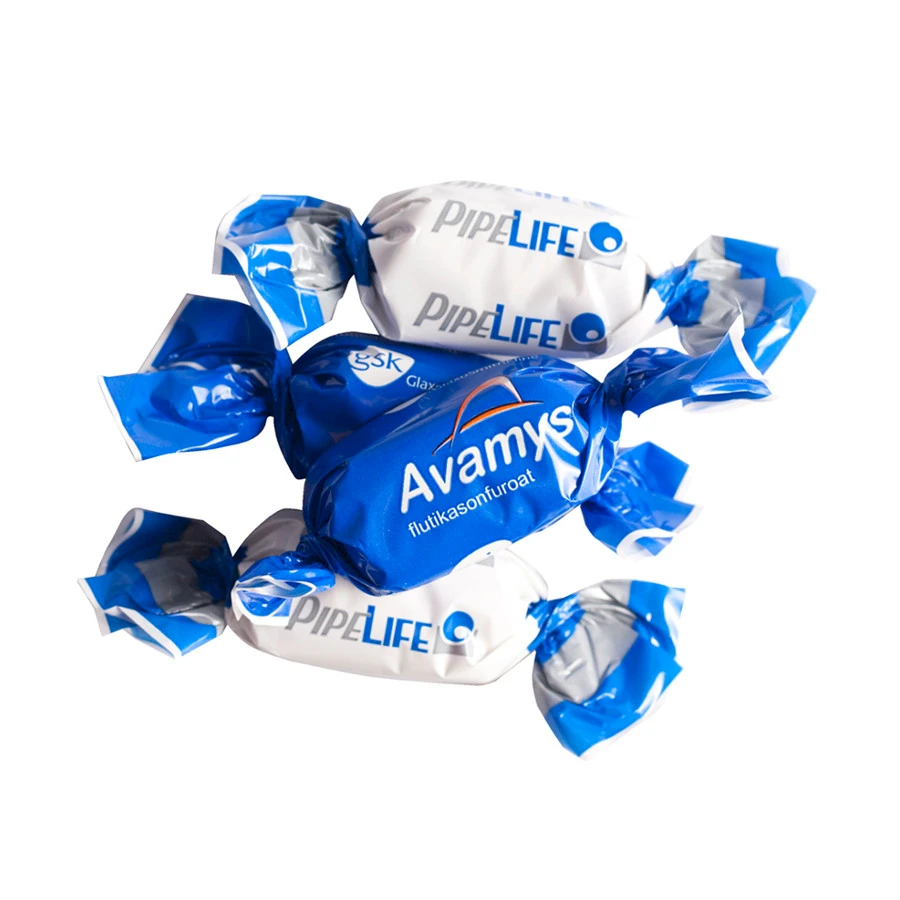 Perinteiset suklaapalat sellofaanipaperissa. Herkullinen suklaamakeinen sopii jakotuotteeksi messuille tai mainoslahjaksi asiakaskäynnille. Suklaat voidaan kääriä valkoiseen, hopeanväriseen tai läpinäkyvään paperiin. Logo tai mainosviesti voidaan painaa toivomallasi värillä sellofaanipaperiin. Laadukkaat suklaapalat on valmistettu perinteisesti ja huolella ympäristösertifikaatin mukaisesti. Suklaasta saatavana kaksi makua. Maut: Dark on sopusointuinen tumma suklaa (57,5 %) ja Milk perinteinen maitosuklaa (34 %). Säilyvyys: noin 12 kk