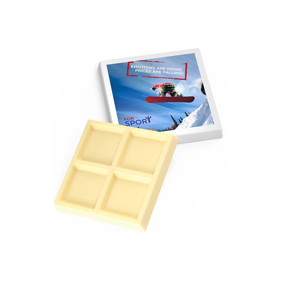 Suklaaneiliö 30g. Makuina valkosuklaa, maitosuklaa tai tumma suklaa. Saat suklaakärepaperiin valokuvatasoisen painatuksen. Säilyvyys 6 kuukautta.