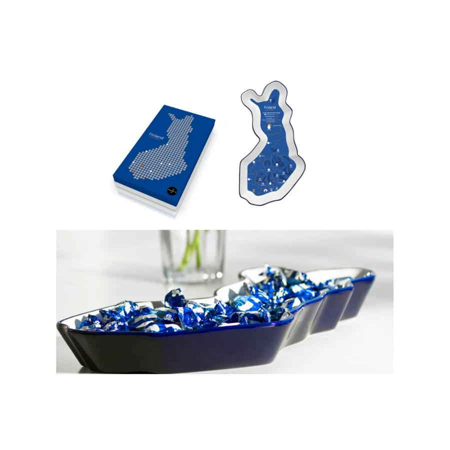 Sagaformin Suomi-kulho. Lähetä terveisiä Suomesta tai muista yhteystyökumppaneitasi itsenäisyyspäivänä tai jouluna. Suomi-kulhon sisäpaperin voidaan tehdä halutunlainen painatus. Paperiin voi painaa esimerkiksi yrityksesi toimipisteet, sijainti tai tervehdys logoilla jne. Kulho on uunin, mikron, pakastuksen ja pesukoneen kestävää kivitavaraa. Voidaan pakata lahjalaatikkoon yhdessä suomalaisen suklaan kanssa. Pyydä tarjous omasta määrästä ja toteutuksesta. Toimitusaika noin 3-4 päivää.Koko: pieni 25 x 190 x 100 mm Koko: iso 350 x 190 50 mm