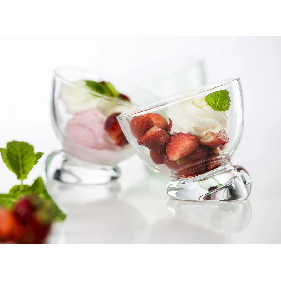Hauskan muotoiset tarjoilukulhot. Lasiset tarjoilukulhot sopivat vaikka jäätelön ja jälkiruokien tarjoiluun. Voidaan pestä astianpesukoneessa. Kirkasta lasia. Lahjapakkaus. Koko 20 cl, halkasija 100 x 95 mm.
