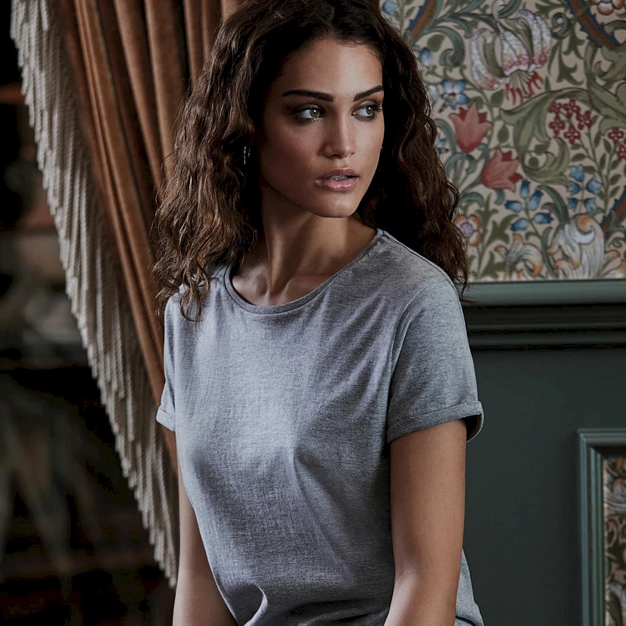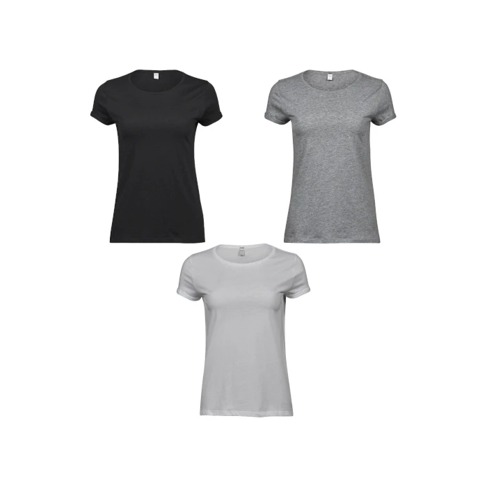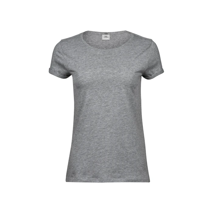 Naisten laadukas T-paita TeeJays. T-paidassa rullatut hihansuut, tuplakutistettu kangas. Pääntiessä kapea ribbineulos.