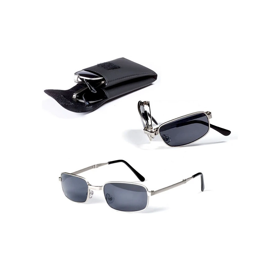 Tyylikkäät aurinkolasit, joiden linsseissä polaroid suojaus. Klassinen malli sopii miehille ja naisille. Lasit taittuvat aisan keskikohdasta ja linssien välistä ja mahtuvat näin todella pieneen tilaan. Musta kotelo suojaa laseja vahingoittumiselta. Logopainatus voidaan tehdä suojakoteloon. Pyydä tarjous omasta määrästä ja painatuksesta.