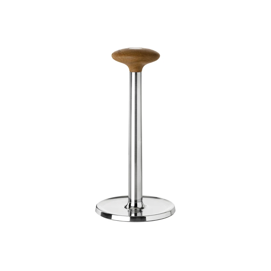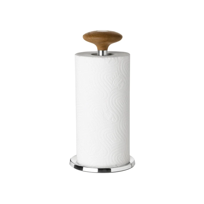 Tyylikäs talouspaperiteline Forest on kaunis ja tarpeellinen arkipäivän ilo keittiöön. Laadukas design talouspaperiteline on valmistettu ruostumattomasta teräksestä ja upeasta puusta. Hyvin rullaavassa telineessä on irrotettava puukahva ja kumipäällystetty pohja joka pitää telineen tukevasti paikallaan. Pehmeä pinta ei myöskään naarmuta keittiötasoa. Forest Design talouspaperitelineen on suunnitellut Klaus Rath.Materiaali: ruostumaton teräs/puu Koko: Ø 13,5 x 27,5 cm