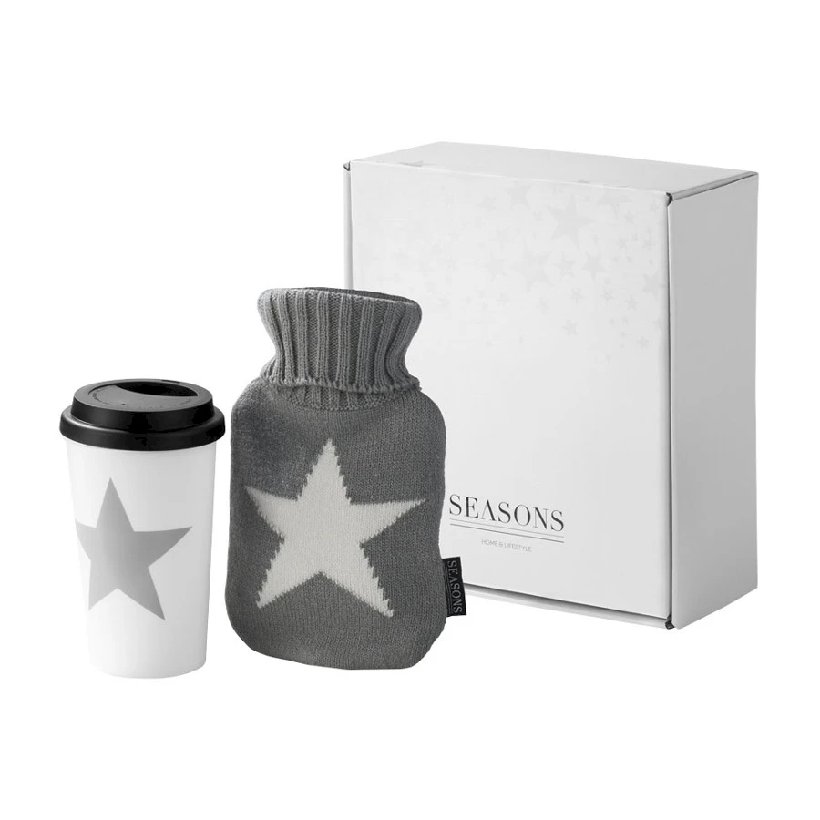 Lahjasetti kylmiä talvipäiviä varten. Lahjasetti pitää sisällään kuumavesipullon neulospäällisellä ja Take away mukin kannella. Pakattu valkoiseen lahjakoteloon. Muki 400 ml, astianpesunkestävä. Hauska talvilahja mikä sopii kaikille! Pyydä tarjous omasta määrästä ja toteutuksesta.