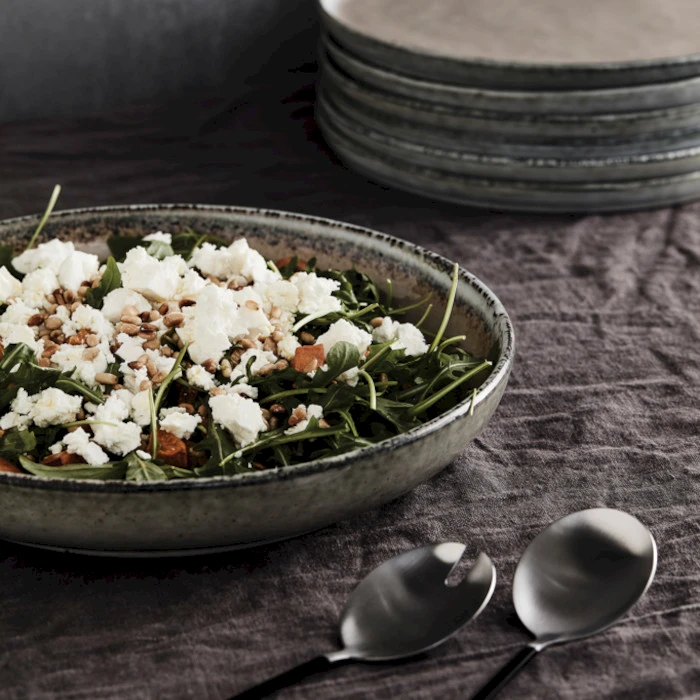 Koristeellinen tarjoilukulho luonnonväristä kivitavaraa. Täydellinen salaateille tai hedelmävadiksi. Konepesun kestävä. Lahjapakkaus. Valikoimastamme löytyy samaan sarjaan myös muita tuotteita.