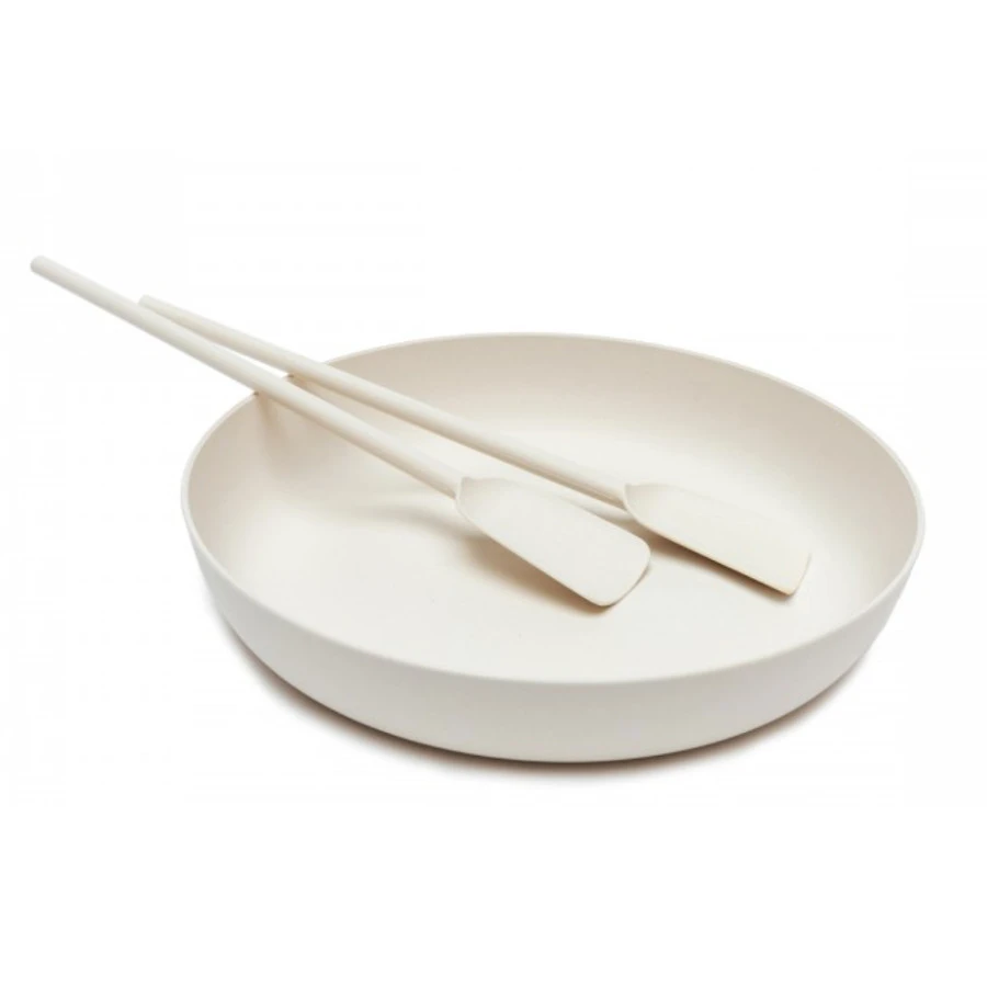 Salaattivuoka ja ottimet. Harri Koskisen suunnittelema upea tarjoiluvati salaateille, hedelmille ja herkuille. Salaattivadin ja ottimien materiaalina on käytetty nerokasta suomalaista innovaatiota, jossa selluloosamassaan on sekoitettu polypropeenia. Selluloosan osuus massasta on 40 %, jonka ansiosta tarjoiluvadista on saatu kestävä, kaunis ja ekologinen. Tarjoiluvati on kestävä, tyylikäs ja pitkäaikainen. Konepesun kestävä.