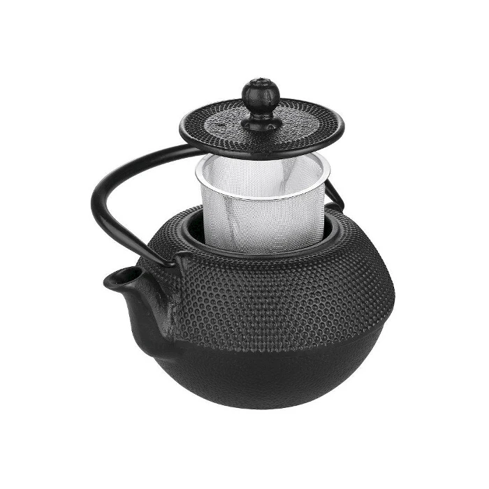 Kaunis valurautainen teepannu rouheteen haudutukseen. Tilavuus 0,8 litraa. Mukana myös ruostumattomasta teräksestä valmistettu, irrotettava teesihti haudutusta varten. Valurauta teepannua voi käyttää kaikilla liesityypeillä lämmitykseen tai pelkästään haudutuspannuna. Väri on valuraudan musta ja pinta on koristekuvioitu. Suosittelemme sekä pannulle että haudutussihdille vain käsin pesua. Valikoimassamme myös muita malleja ja värejä.Väri: mustaMateriaali: valurautaaVetoisuus 0,8 litraa.