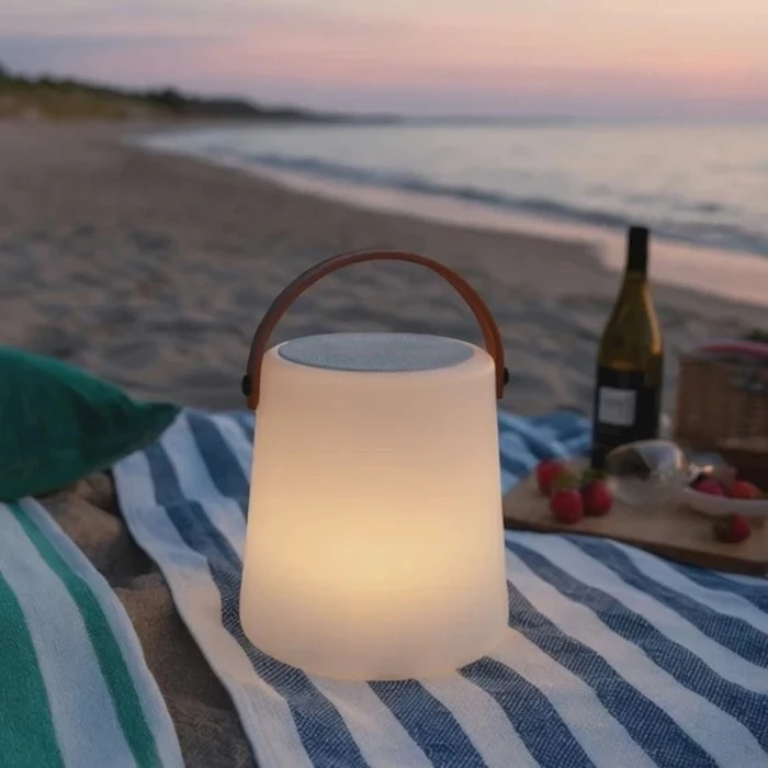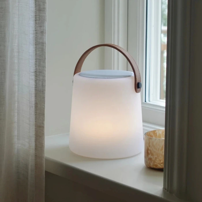 Tyylikäs kannettava terassivalo ja kaiutin samassa. Ladattava LED valo tuo valoa pimeisiin iltoihin ja luo tunnelmaa ja tyyliä terassille tai missä ikinä oltekin. Pehmeä, tunnelmallinen valo yhdistyy täyteläiseen, langattomaan ääneen. Lumi Terassivalo sopii sisätiloihin ja ulkotiloihn. Valmistettu kestävistä materiaaleista ja helppo kantaa mukana. Kannettava valo on johdoton, ladattava ja vedenkestävä. Yrityksesi logomerkkaus voidaan tehdä kantokahvaan.