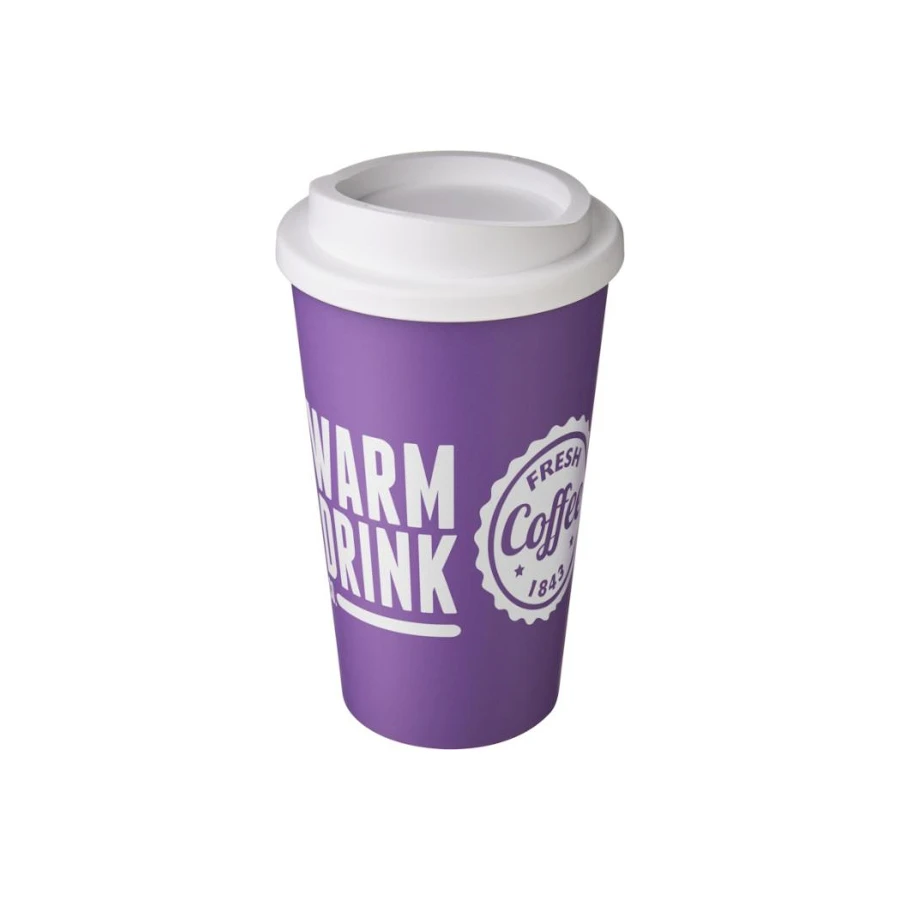 Tuplaseinäinen eristetty kahvimuki. Voit valita kannen ja mukin värin laajasta valikoimastamme. Yhdistele eri värinen muki ja kansi tai valitse muki ja kansi sävy sävyyn. BPA-vapaa muki. Logopainatuksella saat mukista yksilöllisen.