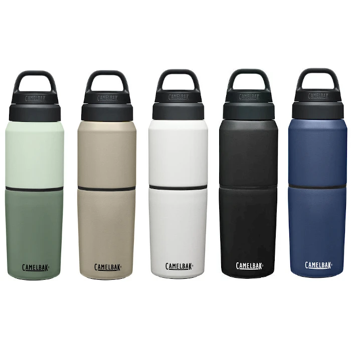 CamelBak 2-in 1 teräksinen juomapullo, jonka pohjassa irroitettava muki. Pullon korkkiin voi pakata silikonisen mukin kannen, kahvimaidon tai pikkupurtavaa. Pulloa on helppo kuljettaa kantokahvasta. CamelBak 2inOne termospullo sopii sekä lämpimien, että kylmien juomien nauttimiseen. Tuplaseinärakenne pitää sisällön halutun lämpöisenä pitkään. Valmistettu materiaaleista, jotka eivät aiheuta hajuja tai makuja sisältöön, eivätkä myöskään tyhjään pulloon. Pullon materiaali on ruostumatonta terästä. Helppo puhdistaa: korkin osat ja kannen voi pestä astianpesukoneessa, pullo pestään käsin. BPA, BPS & BPF vapaa.