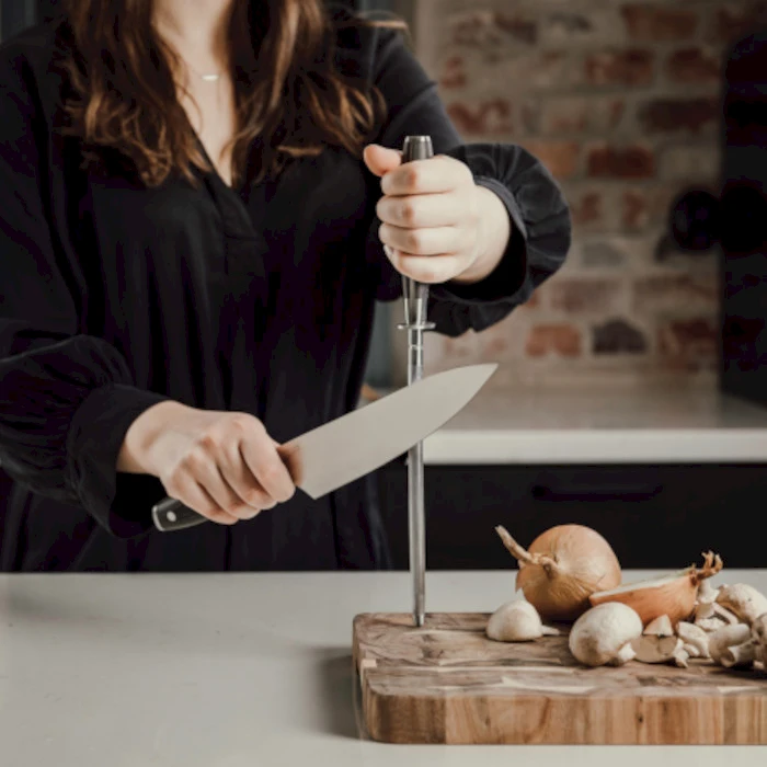 Mitat: veitsen terä 20 cm, teroitusterä 33 cm