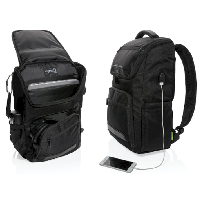 Huippulaadukas Swiss Peak tietokonereppu lukuisilla taskuilla ja ominaisuuksilla. Repussa on RFID suojattu tasku, USB ulostulo, kynäpaikat, vesipullotasku ja irrotettava matkalaukku tagi. Tilavan päälokeron lisäksi repussa on pehmustettu laptoptasku ja vetoketjullinen lisätasku tärkeille päivittäisille tavaroillesi. Reppu soveltuu 15,6" kokoiselle tietokoneelle. Reppu on valmistettu kestävästä kierrätetystä 1680D rPET -polyesterikankaasta.