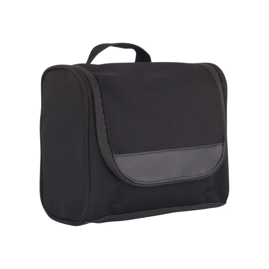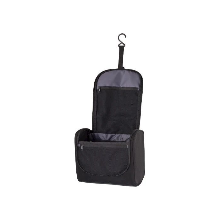 Moderni toilettilaukku, jossa paljon tavallisia taskuja ja verkkotaskuja. Takana suuri vetoketjullinen tasku, josta tavarat ovat nopeasti saatavilla. Kantokahva ja koukku avoimen laukun ripustamista varten. Yrityksesi logolle ja mainosvietille useita eri merkkausvaihtoehtoja toilettilaukkuun. Kysy lisää myyntimme auttaa mielellään.