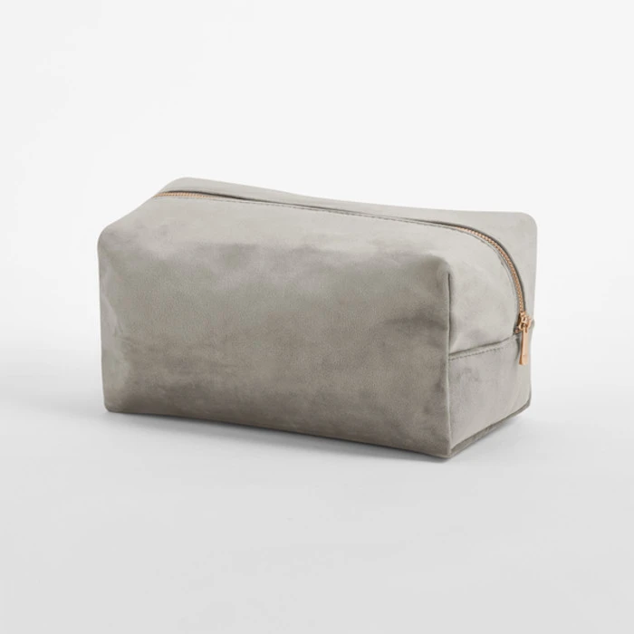 Samettinen Toilettilaukku 100 % GRS-sertifioitua kierrätettyä polyesteriä. Toilettipussukassa korkeakiiltoinen kultainen metallivetoketju ja vedin. Monikäyttöinen kevyt toilettilaukku sopii moniin tarkoituksiin. Vuori:100 % GRS-sertifioitu kierrätetty polyesteri. Irrotettava etiketti helpottaa brändäystä.